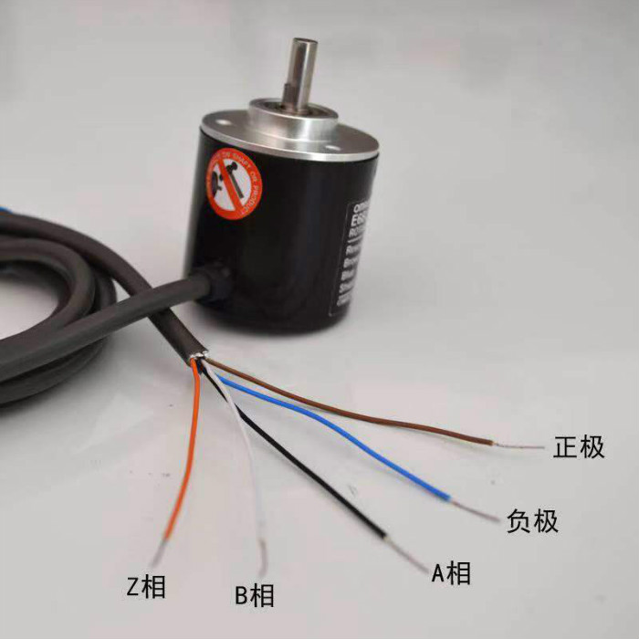 由一个中心有轴的光电码盘,其上有环形通、暗的刻线,有光电发射和接收器件读取,获得四组正弦波信号组合成A、B、C、D,每个正弦波相差90度相位差(相对于一个周波为360度),将C、D信号反向,叠加在A、B两相上,可增强稳定信号;另每转输出一个Z相脉冲以代表零位参考位。